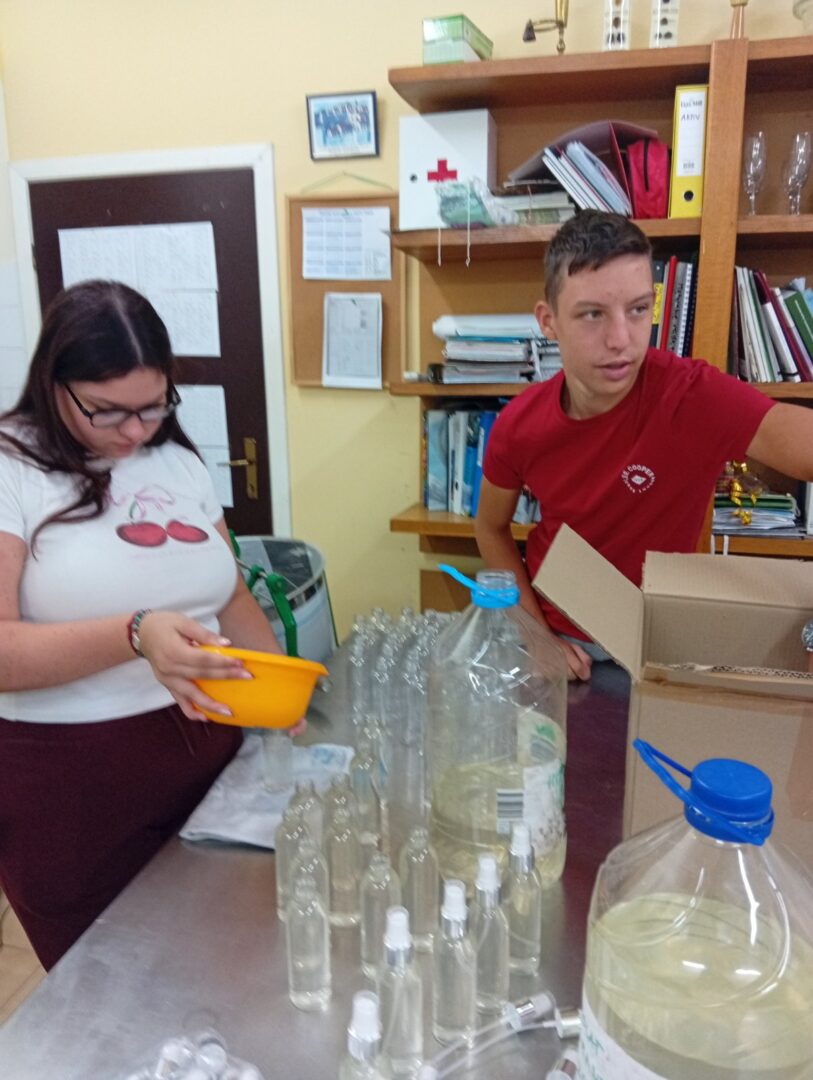 Početkom školske godine, naši su učenici bili aktivni po cijeloj školi. Jedna ekipa pripremala je hidrolate lavande i smilja dok je druga ekipa nastavila je radove u školskom vrtu: uređivali su, orezivali, sadili, sijali i orali, a treći su pripremali suhe cvjetove lavande za punjenje u vrećice.