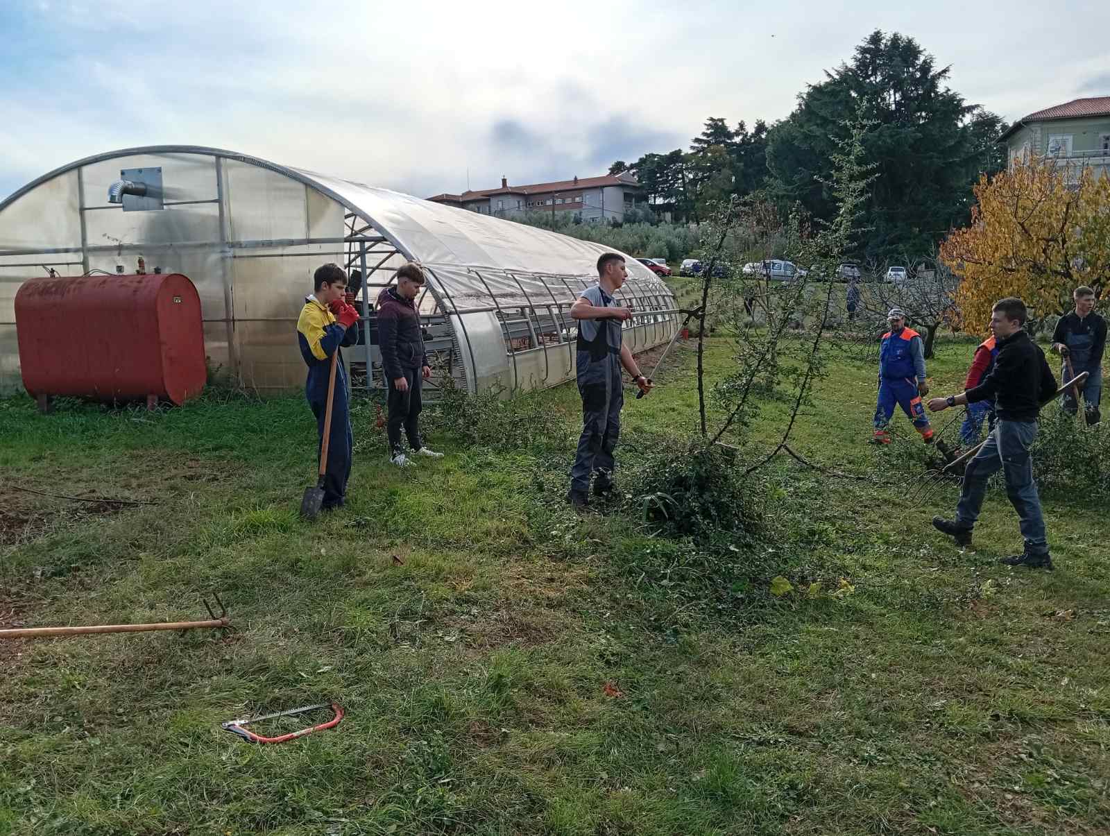 Porezali smo suhe grane sa stabala i grmova, uredili kamenjar, nasad aromatičnog bilja i ogradu na ulazu u školu, pokosili, pograbljali i posadili lukovice tulipana koje će na proljeće unijeti boju u zelenilo našeg školskog okoliša. Raskrčili smo površinu za biodinamičku proizvodnju i usput promiješali kompost koji će biti spreman za upotrebu ovo proljeće.