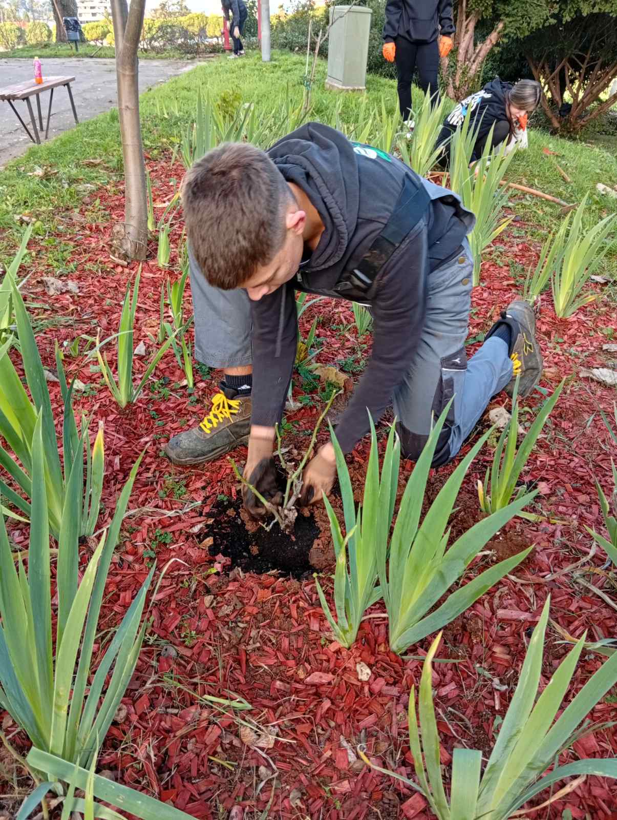 Ni ovu čistku nismo proveli bez pomoći naših susjeda Instituta za poljoprivredu i turizam, a uz njih pomogli su nam i radnici gradskog poduzeća Usluga, odjel hortikulture, koji su nam donirali lukovice tulipana i pomogli oko uređenja jednog dijela vrta.